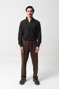 Design: Brown relaxed ankle trousers featuring an adjustable drawstring waist, zippered front cross pockets for secure storage, and a clean modern silhouette.