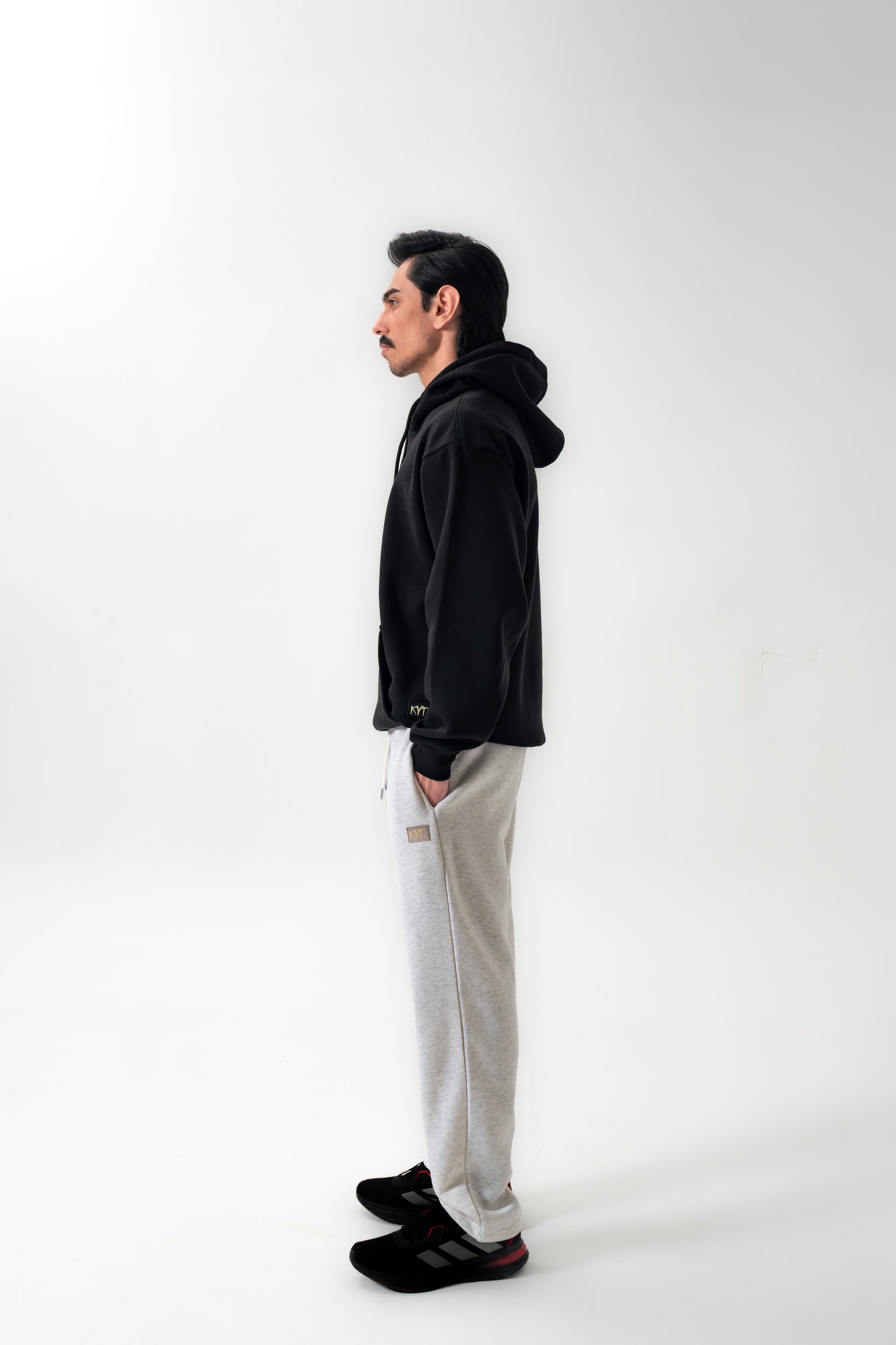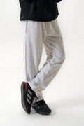 Design: light grey relaxed ankle trousers with an adjustable drawstring and front cross pockets.