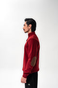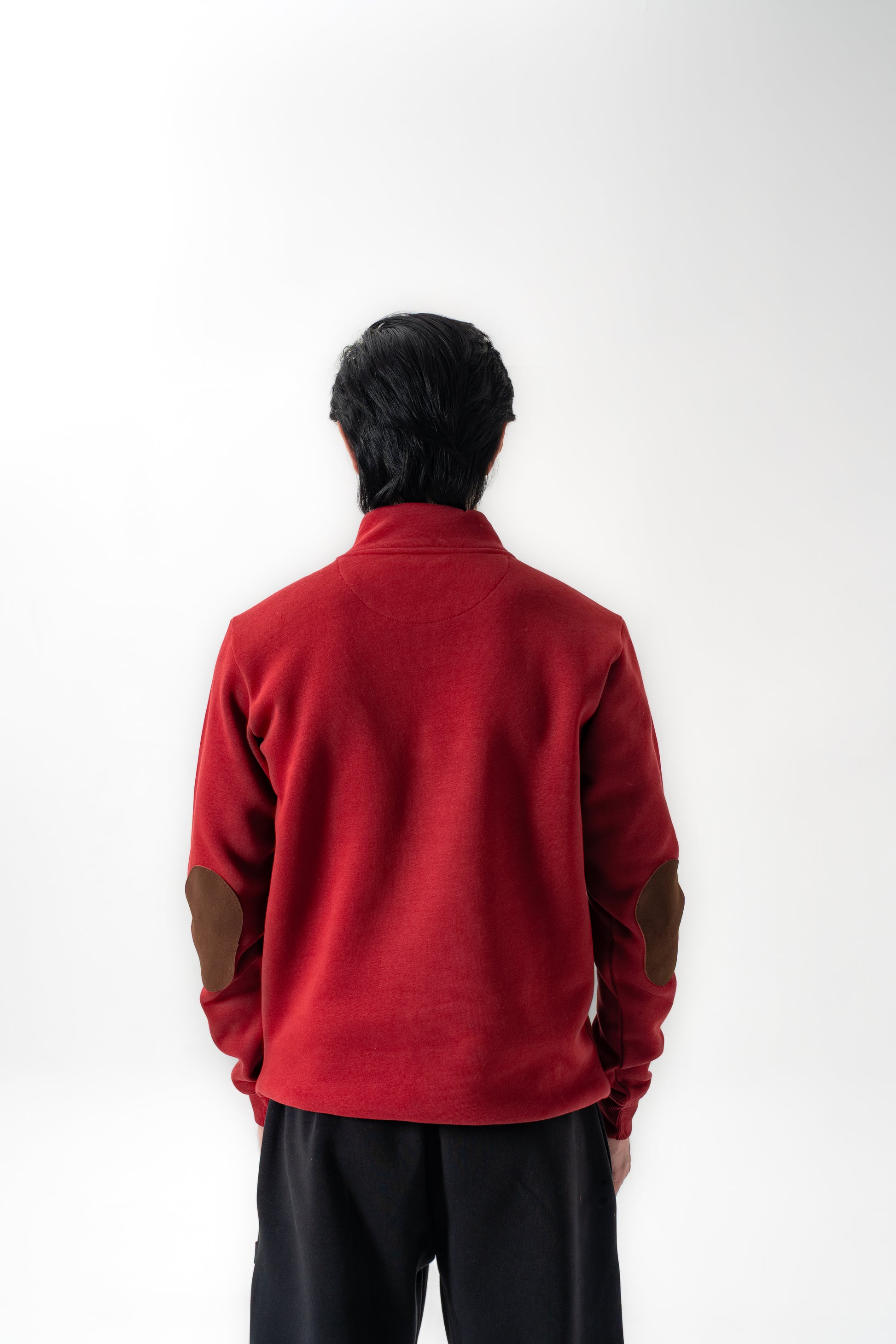 Design: Quarter-zip featuring a stand collar and contrast elbow patches